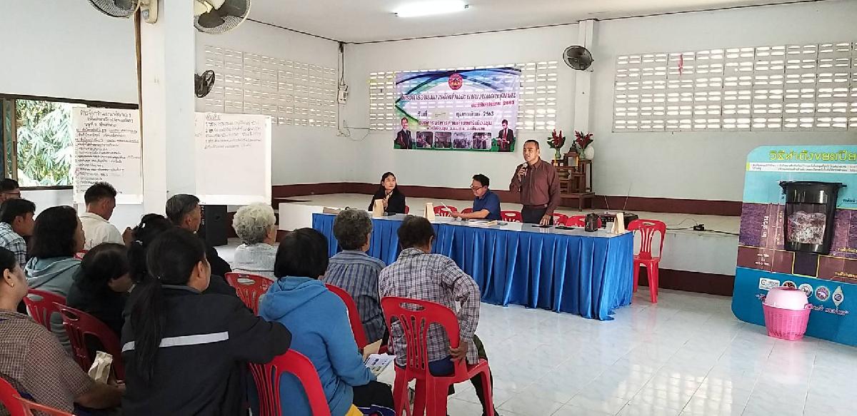 การร่วมประชุมการดำเนินการขับเคลื่อนตามโครงการรณรงค์ส่งเสริมการคัดแยกขยะระดับครัวเรือน วันที่ 17 เดือน กุมภาพันธ์ พ.ศ. 2563 เวลา 09.30 น. ณ ศาลาอเนกประสงค์หมู่บ้านท่าศาลา ม.7