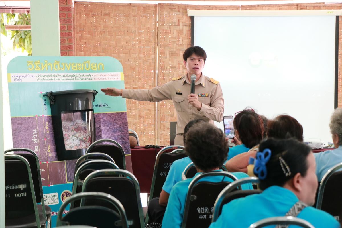 - กิจกรรมการให้ความรู้เรื่องการจัดการขยะอินทรีย์และขยะเปียกในครัวเรือน โดย นายพายัพ หมายมั่น ตำแหน่ง รองปลัดองค์การบริหารส่วนตำบลศรีเมืองชุม