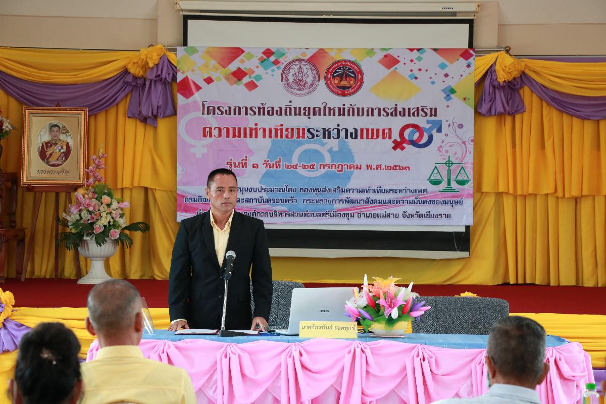 โครงการท้องถิ่นยุคใหม่กับการส่งเสริมความเท่าเทียมระหว่างเพศ รุ่นที่ 1 วันแรกวันที่ 24 กรกฎาคม 2563 สนับสนุนงบประมาณโดย กองทุนส่งเสริมความเท่าเทียมระหว่างเพศ กรมกิจการสตรีและสถาบันครอบครัว