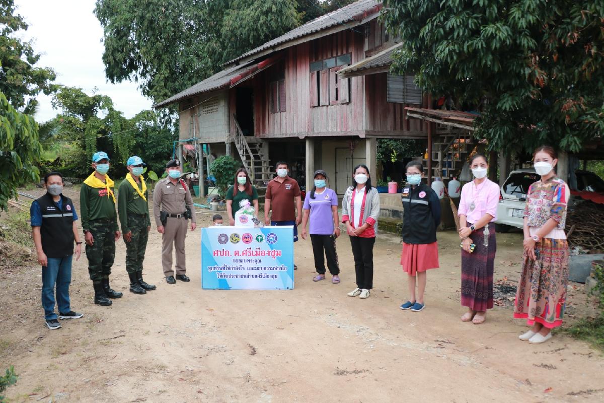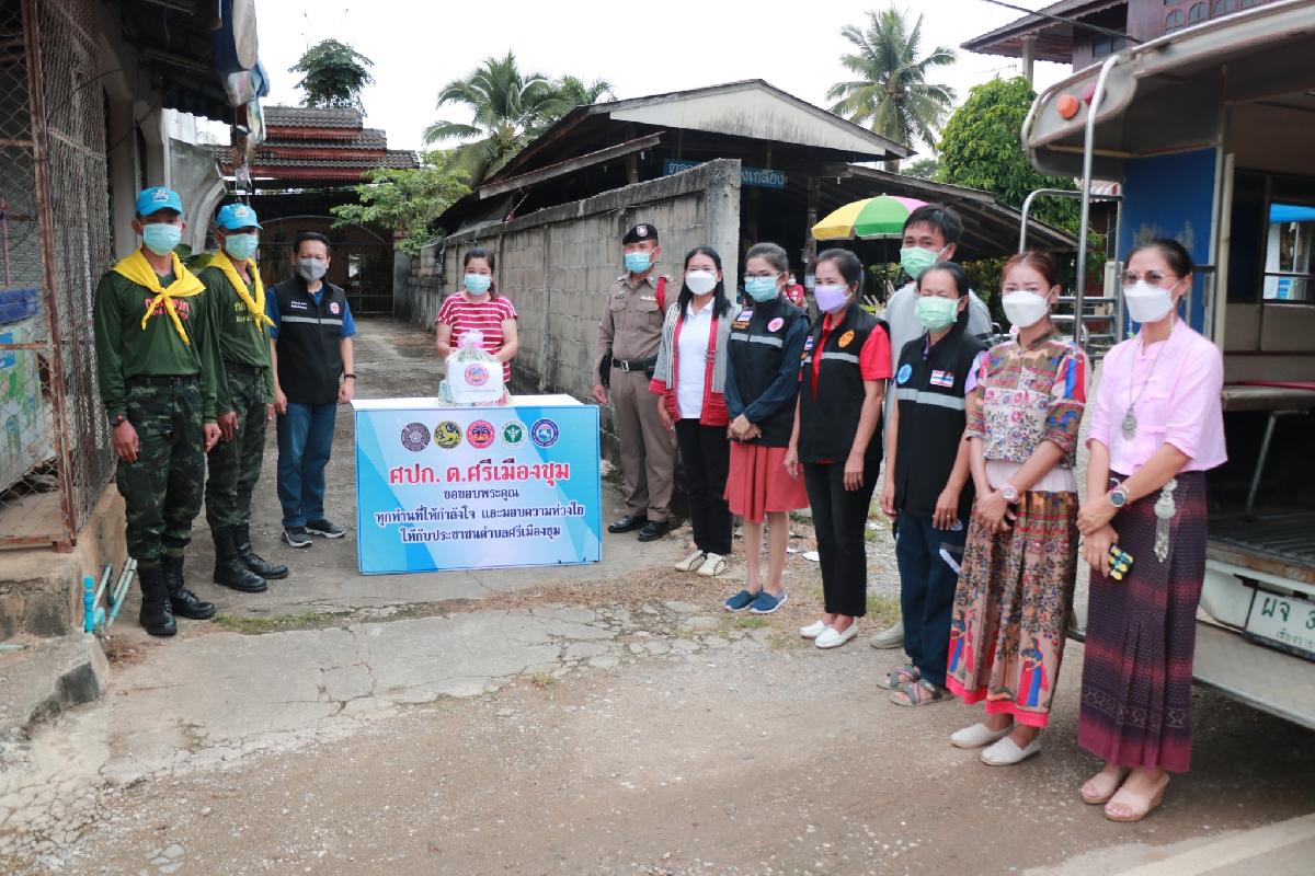 วันที่ 15 ตุลาคม 2564 นางสาวทันตา ชุมเปีย ปลัดองค์การบริหารส่วนตำบลศรีเมืองชุม พร้อมด้วย นายชาติณรงค์ สงคำ หัวหน้าสำนักปลัด อบต.,นางสาวณัฐชยาพรรณ นันทะศักดิ์ นักจัดการงานทั่วไป ,นางสาวพิฏฐณิฏา หมายมั่น นักพัฒนาชุมชน ,พ.จ.อ.สราวุธ ยุวงค์ เจ้าพนักงานป้องกันและบรรเทาสาธารณภัย ,นางสาวอภิชญา บุญลือ ผู้ช่วยเจ้าพนักงานสาธารณสุข ร่วมด้วย นางกัลยา หงษ์คำ ผู้ช่วยผู้ใหญ่บ้าน หมู่ที่ 6 บ้านทุ่งเกลี้ยง , ร.ต.ท. ประพันธ์ เพ็ญยะสิทธิ์ เจ้าหน้าที่ตำรวจสถานีตำรวจเกาะช้าง , เจ้าหน้าที่ทหาร ,อสม. บ้านทุ่งเกลี้ยง ,สันโค้ง ,ศรีป่าสัก , นายบุญธรรม หมูนิล ผู้ใหญ่บ้านสันโค้ง ได้ร่วมกันมอบถุงยังชีพให้กับครอบครัวผู้ที่กักตัวอยู่ที่บ้าน เนื่องจากมีความเสี่ยงสูงในการสัมผัสหรือใกล้ชิดผู้ป่วยโรคไวรัสโคโรนา 2019 ในพื้นที่ทุ่งเกลี้ยง, ศรีป่าสัก และ สันโค้ง โดยให้มีการกักตัวเองเฝ้าระวังโรคเป็นเวลา 14 วัน ขอบคุณผู้ที่มีส่วนเกี่ยวข้องในการช่วยเหลือประชาชนในครั้งนี้ทุกท่าน และขอให้พี่น้องประชาชนทุกคนจงเข้มแข็ง เราจะสู้กับวิกฤติการณ์นี้ไปด้วยกัน