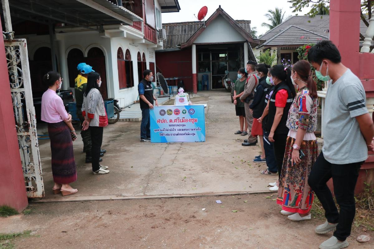 มอบถุงยังชีพให้กับครอบครัวผู้ที่กักตัวอยู่ที่บ้าน