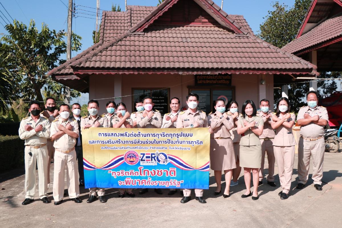 วันที่ 31 มกราคม 2565 เวลา 10.30 น. นายเด่นชัย ลาวิชัย นายกองค์การบริหารส่วนตำบลศรีเมืองชุม พร้อมด้วยคณะผู้บริหาร ,นายสายคำ ทาศักดิ์ ประธานสภาองค์การบริหารส่วนตำบลศรีเมืองชุม พร้อมด้วยสมาชิกสภาองค์การบริหารส่วนตำบลศรีเมืองชุมทุกหมู่บ้าน และนางสาวทันตา ชุมเปีย ปลัดองค์การบริหารส่วนตำบลศรีเมืองชุม พร้อมด้วยหัวหน้าส่วนราชการ พนักงานส่วนตำบล ได้ร่วมกันแสดงพลังต่อต้านการทุจริตทุกรูปแบบและการเสริมสร้างการมีส่วนร่วมในการป้องกันการทุจริต ณ องค์การบริหารส่วนตำบลศรีเมืองชุม อำเภอแม่สาย จังหวัดเชียงราย