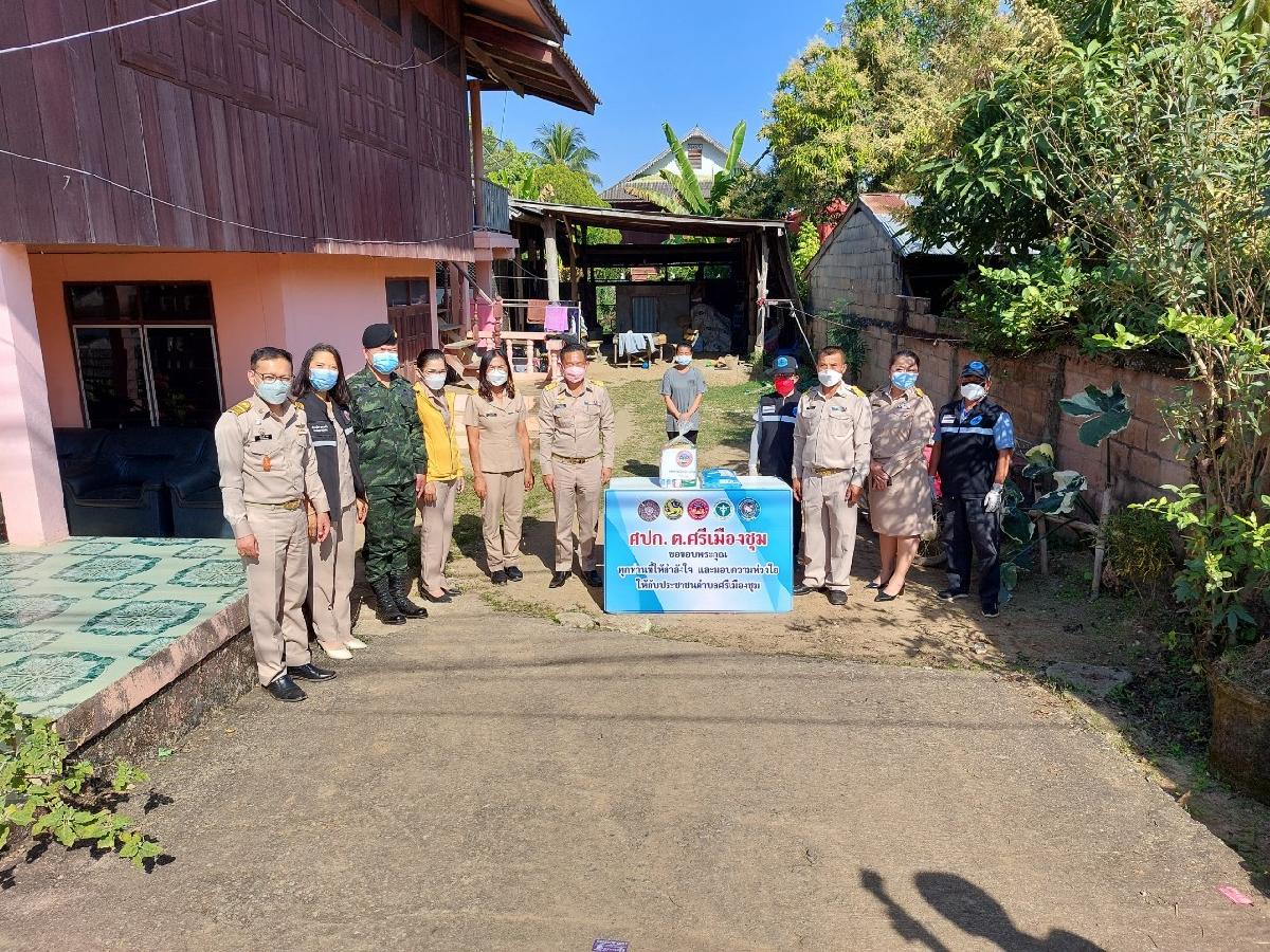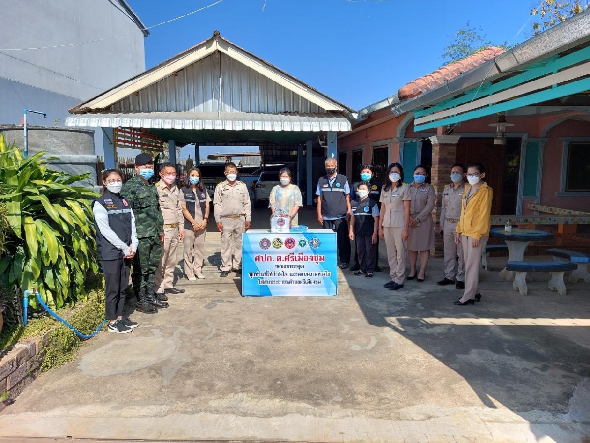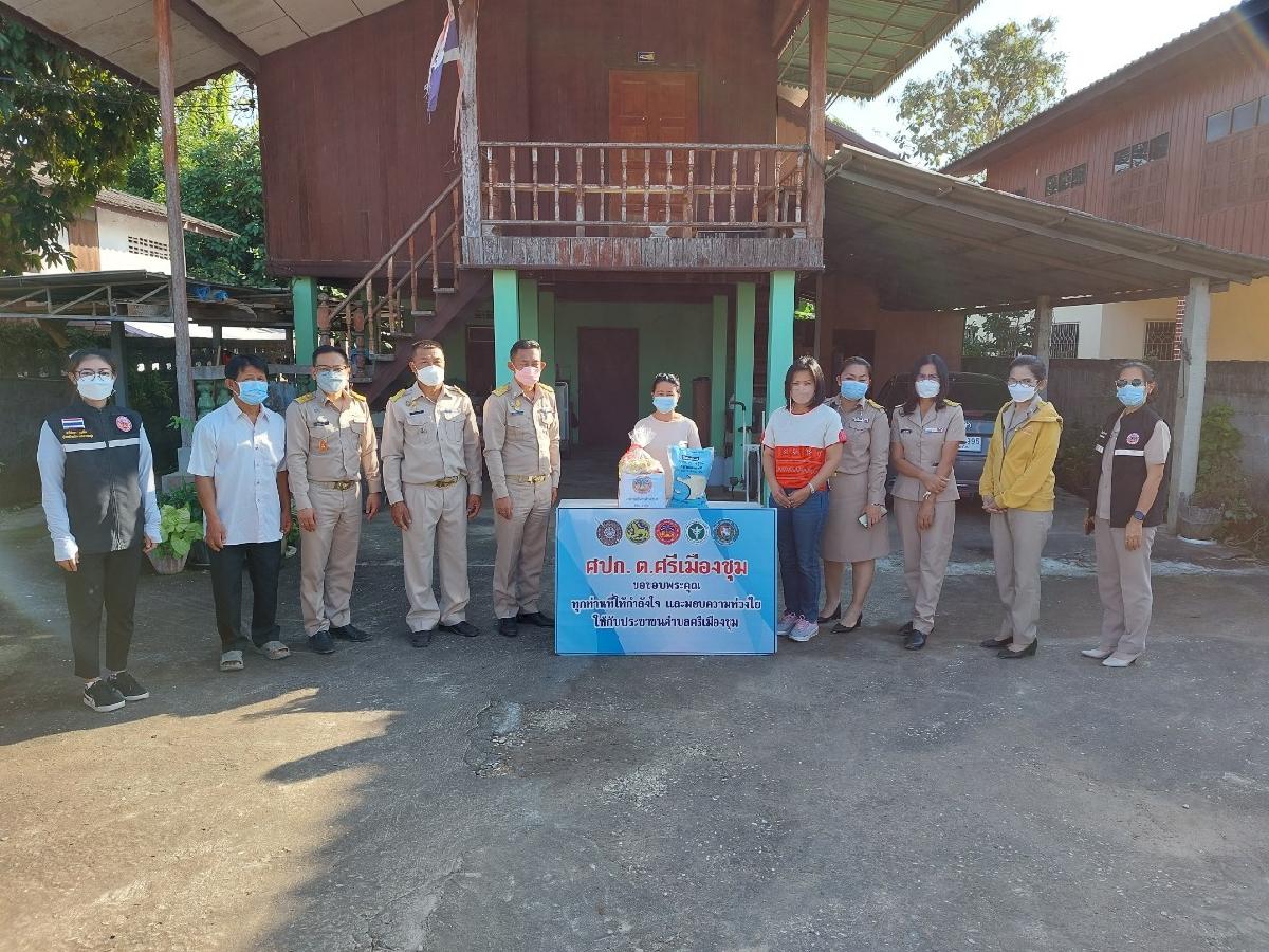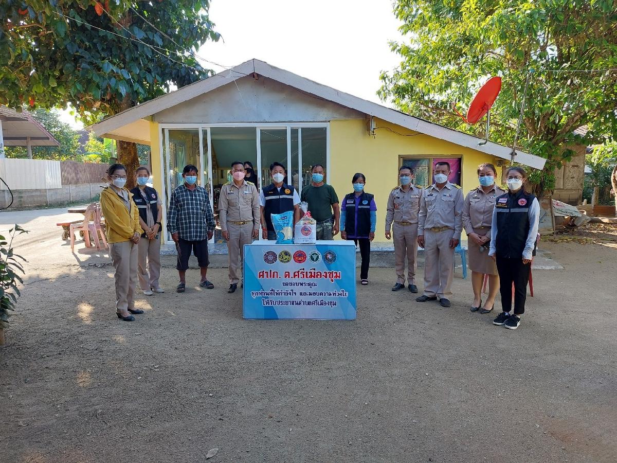 วันที่ 31 มกราคม 2565 นายเด่นชัย ลาวิชัย นายกองค์การบริหารส่วนตำบลศรีเมืองชุม พร้อมด้วย นายดิเรก ภิระบรรณ์ นางรำจวน ตันตรา รองนายกองค์การบริหารส่วนตำบลศรีเมืองชุม และนางสาวชญาภา โชติอัญญาภักดิ์ เลขานุการนายกองค์การบริหารส่วนตำบลศรีเมืองชุม พร้อมด้วย อสม. ม.1-9 กำนัน ผู้ใหญ่บ้าน ร่วมกันมอบถุงยังชีพสำหรับผู้กักตัวที่ได้รับผลกระทบจากเชื้อไวรัสโคโรนา 2019