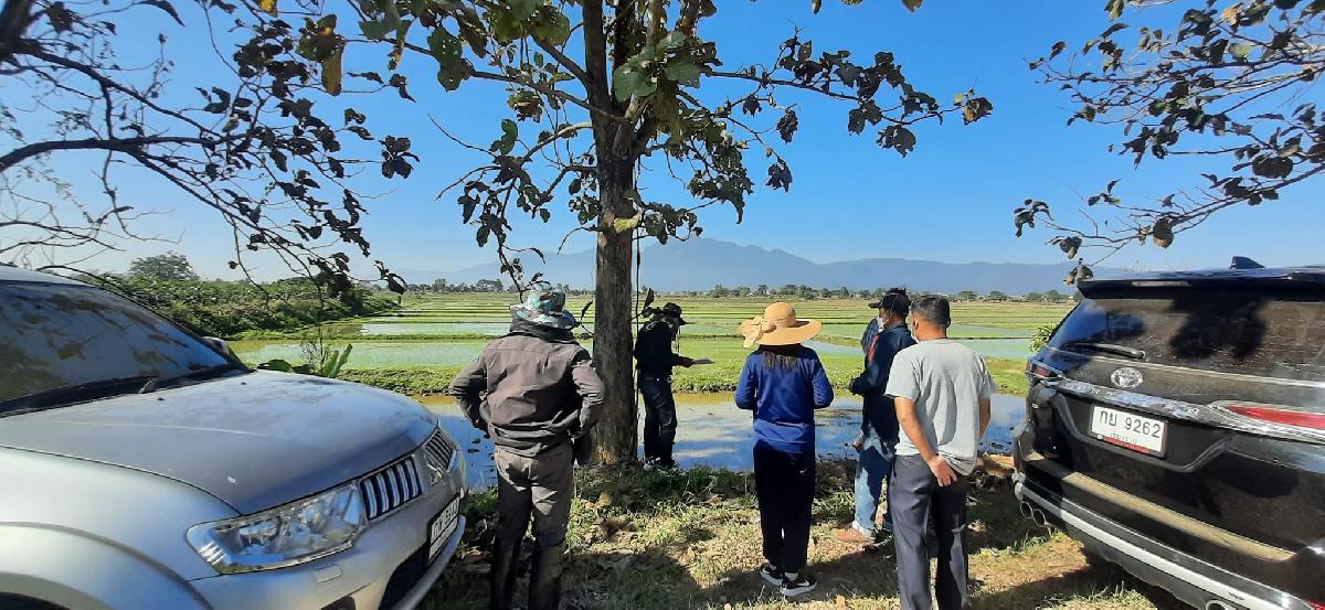 สำรวจพื้นที่ต้นน้ำในเขตพื้นที่ตำบลศรีเมืองชุม เพื่อเตรียมการในการขุดบ่อทำธนาคารน้ำใต้ดินแบบเปิดและพื้นที่ขุดบ่อบาดาลโดยใช้ระบบโซล่าร์ปั๊ม