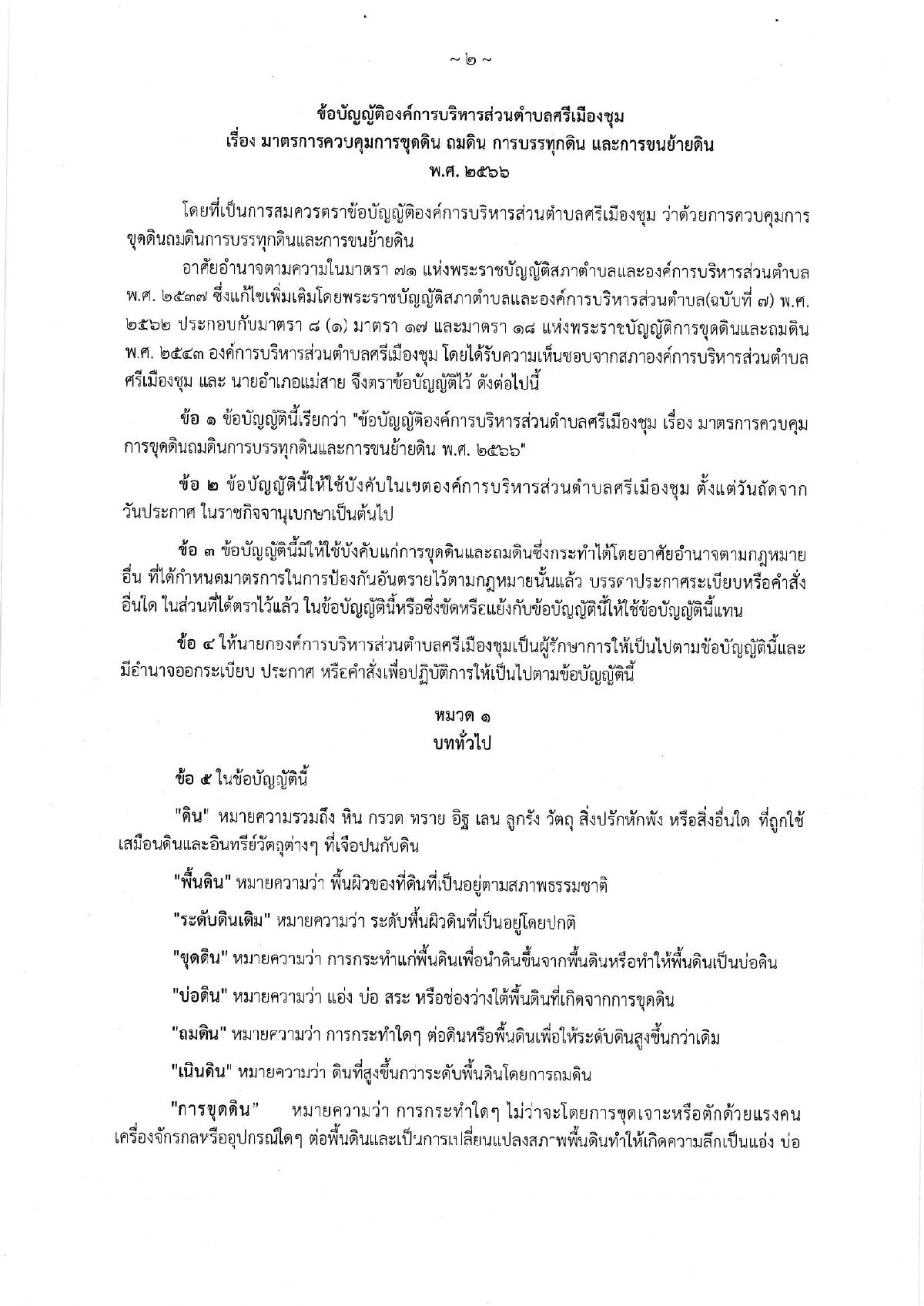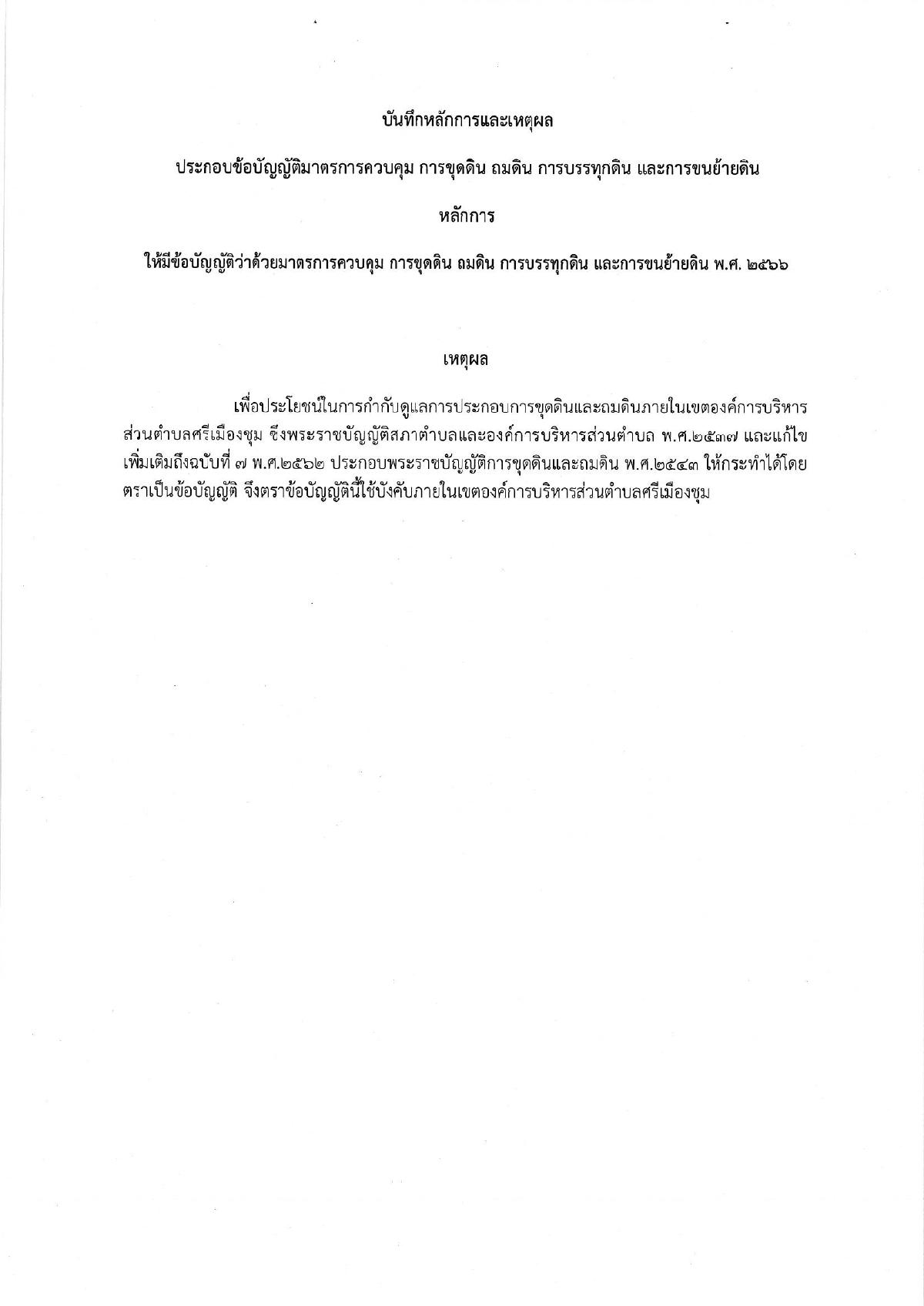 ประชาสัมพันธ์ ข้อบัญญัติฯ เรื่อง มาตรการควบคุม การขุดดิน ถมดิน การบรรทุกดิน และการขนย้ายดิน พ.ศ. 2566