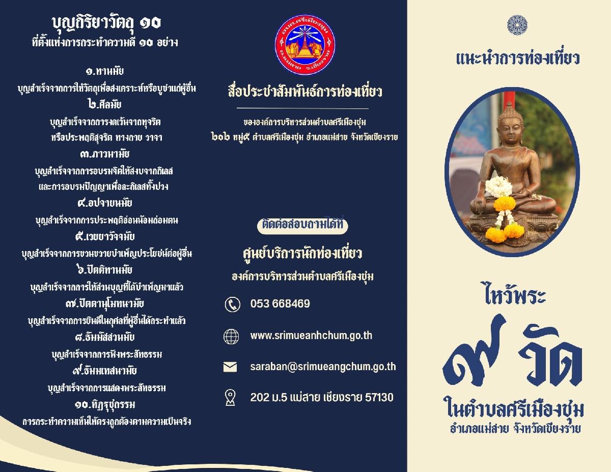 แผ่นพับแนะนำแหล่งท่องเที่ยว 9วัดในตำบลศรีเมืองชุม