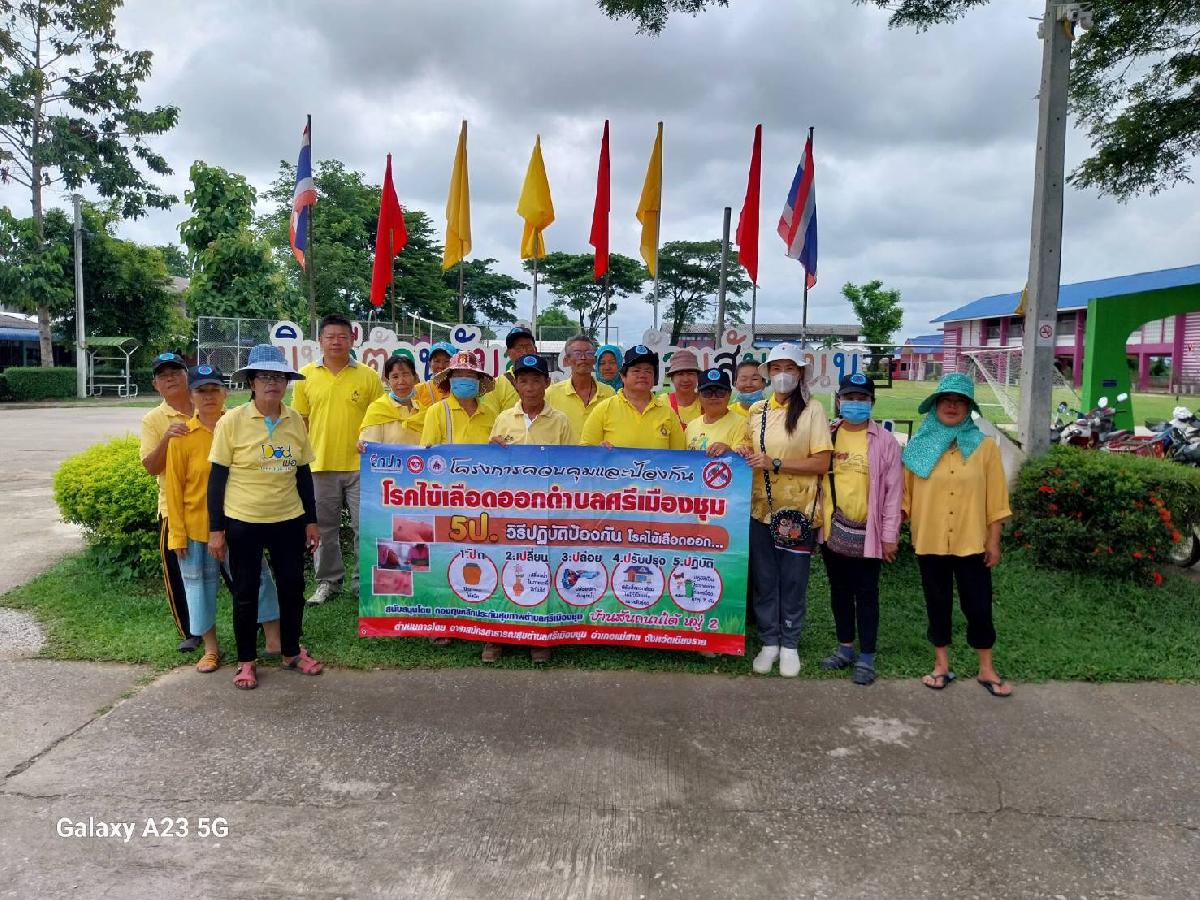 โครงการควบคุมและป้องกันโรคไข้เลือดออก โดยองค์การบริหารส่วนตำบลศรีเมืองชุม ร่วมกับ โรงพยาบาลส่งเสริมสุขภาพตำบลศรีเมืองชุมพร้อมด้วยอาสาสมัครสาธารณสุข รมวถึงหน่วยงานในพื้นที่ ร่วมกันขับเคลื่อนกิจกรรมรณรงค์ควบคุม ป้องกันโรคไข้เลือดออกโดยมีกิจกรรม Big cleaning day กิจกรรมคว่ำลูกน้ำยุงลาย ขัดไข่ยุงลาย หยอดทรายเทมีฟอร์ด