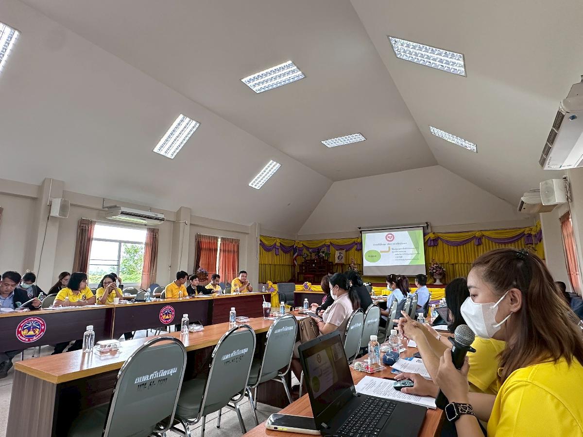 โดยมี เจ้าหน้าที่กองทุนหลักประกันสุขภาพตำบลศรีเมืองชุม และพยาบาลวิชาชีพ จาก โรงพยาบาลส่งเสริมสุขภาพตำบลศรีเมืองชุม ได้นำเสนอการขับเคลื่อนการบริหารจัดการระบบดูแลระยะยาวด้านสาธารณสุขสำหรับผู้สูงอายุที่มีภาวะพึ่งพิง (LTC) ให้แก่ผู้เข้าร่วมประชุมได้รับทราบเพื่อแลกเปลี่ยนเรียนรู้ในการดำเนินการ กองทุนฯ LTC