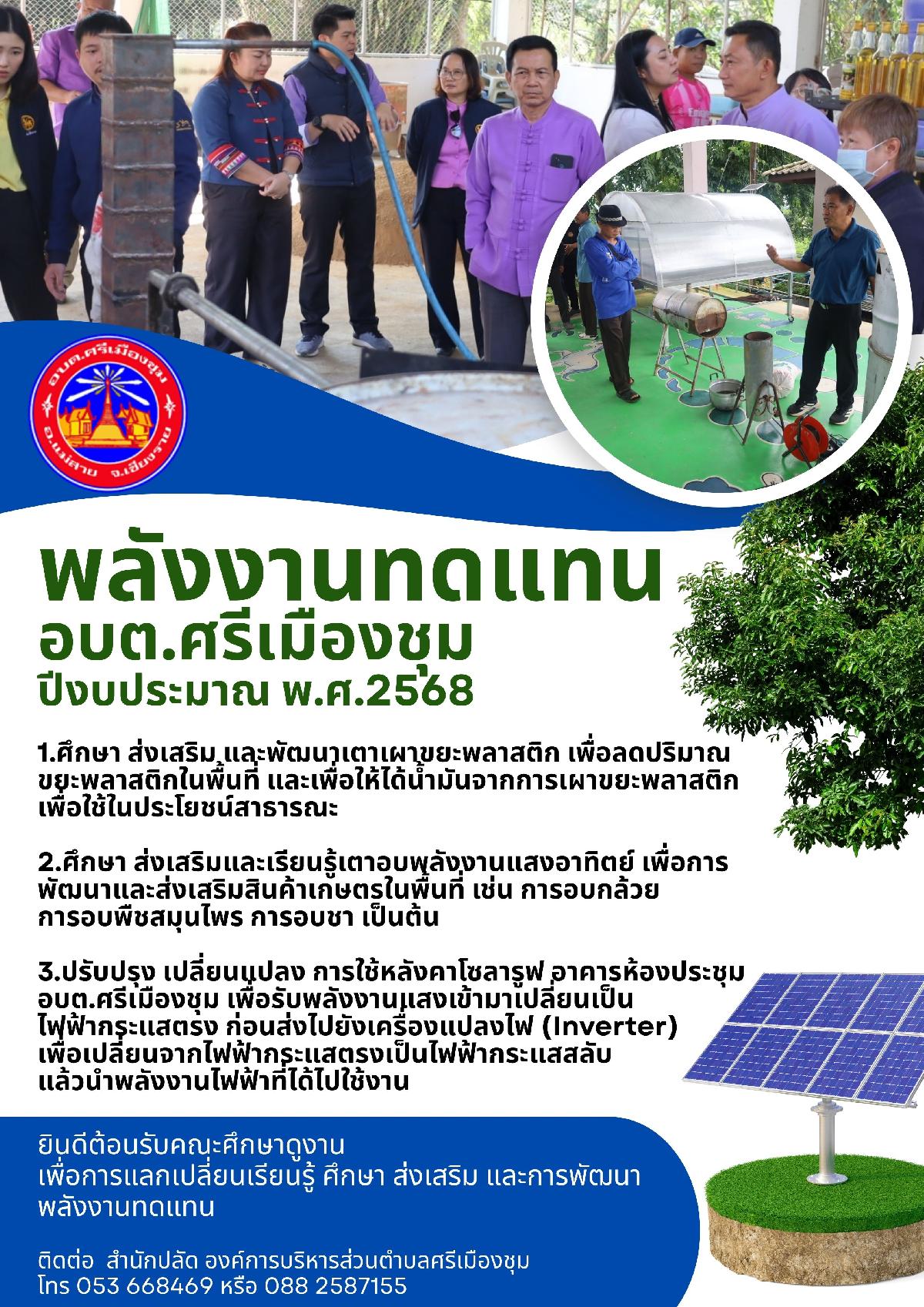 ภาพกิจกรรมการดำเนินขององค์การบริหารส่วนตำบลศรีเมืองชุม ด้านการส่งเสริมและสนับสนุนพลังงานทดแทน