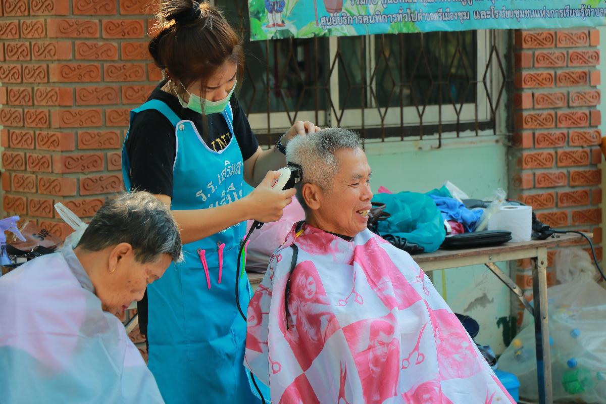 กิจกรรมการให้บริการ ตัดผม ซอยผม ฟรี โดยคณะทีมงานโรงเรียนเสริมสวยนลินีย์