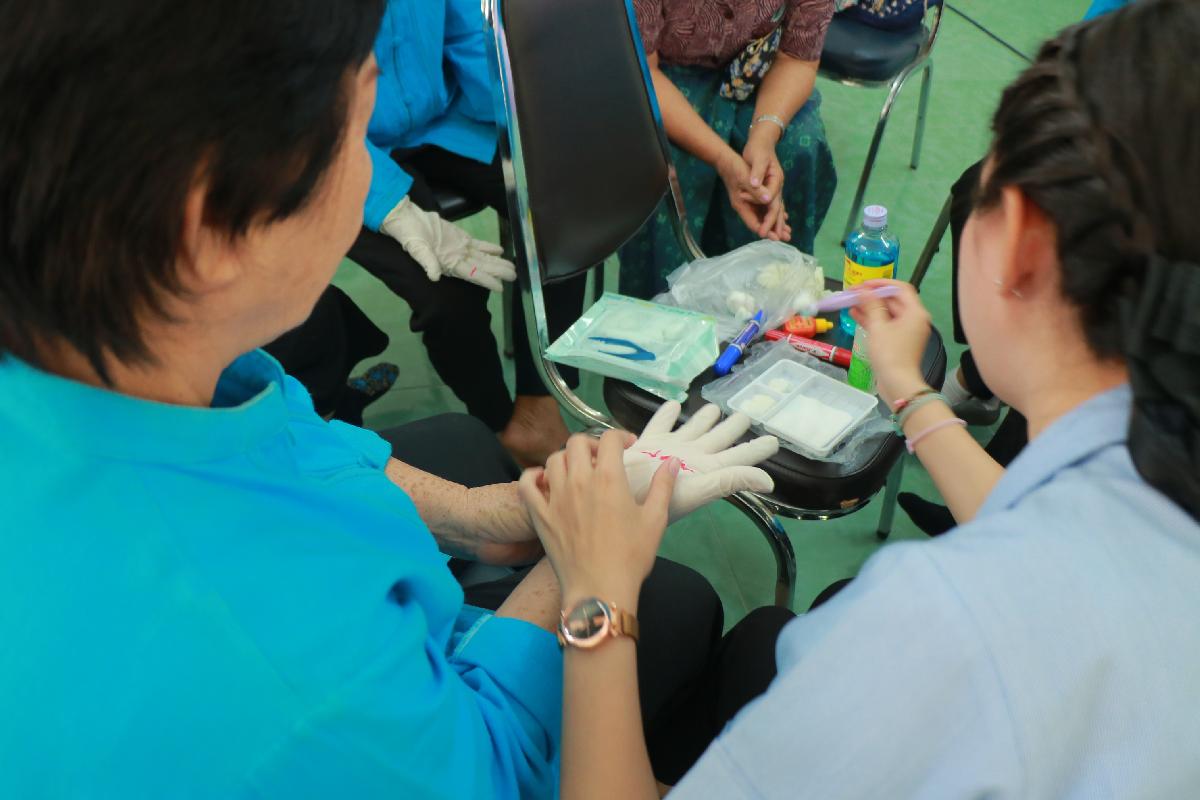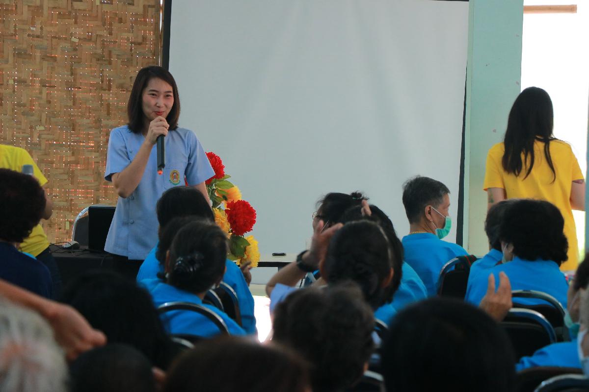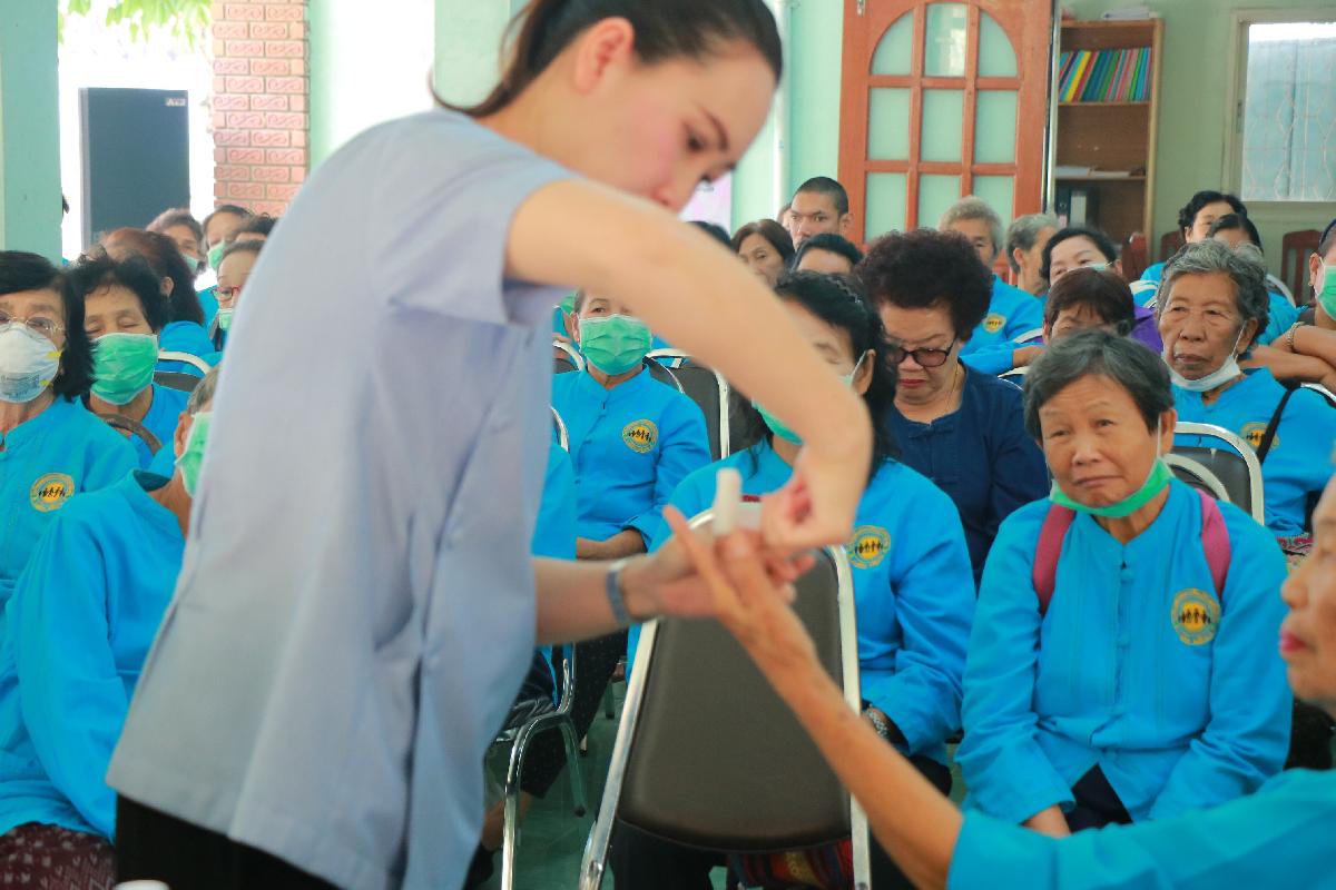 กิจกรรมการให้ความรู้เทคนิคการป้องกันเรื่องของการประสบอุบัติเหตุที่อาจเกิดกับผู้สูงอายุรวมถึงการปฐมพยาบาลเบื้องต้นการล้างแผลการทำแผลโดยนักศึกษาปริญญาโท