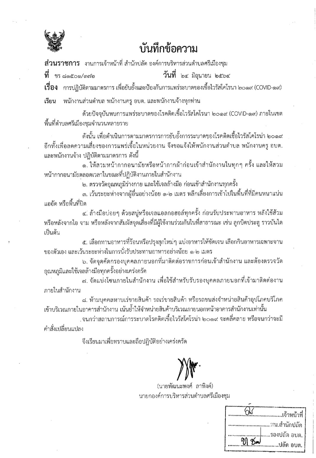 มาตรการภายในเพื่อส่งเสริมความโปร่งใสและป้องกันการทุจริตของ อบต.ศรีเมืองชุม