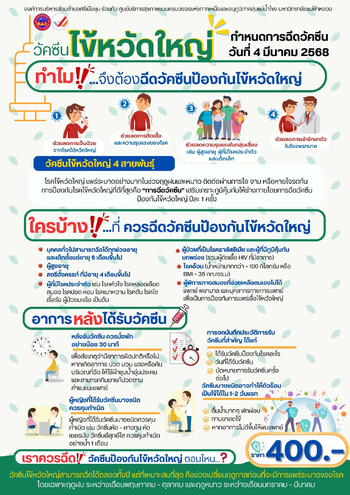 ประชาสัมพันธ์ฉีดวัคซีนไข้หวัดใหญ่ วันที่ 4 มีนาคม 2568 ณ องค์การบริหารส่วนตำบลศรีเมืองชุม