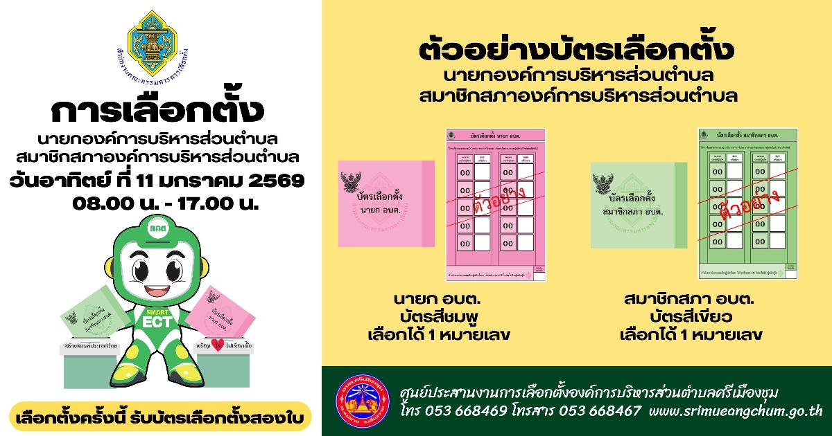 ตัวอย่างบัตรเลือกตั้งของนายกและสมาชิกสภาองค์การบริหารส่วนตำบลศรีเมืองชุม