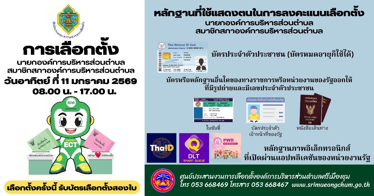 หลักฐานที่ใช้แสดงตนในการลงคะแนนเลือกตั้งของนายกและสมาชิกสภาองค์การบริหารส่วนตำบลศรีเมืองชุม